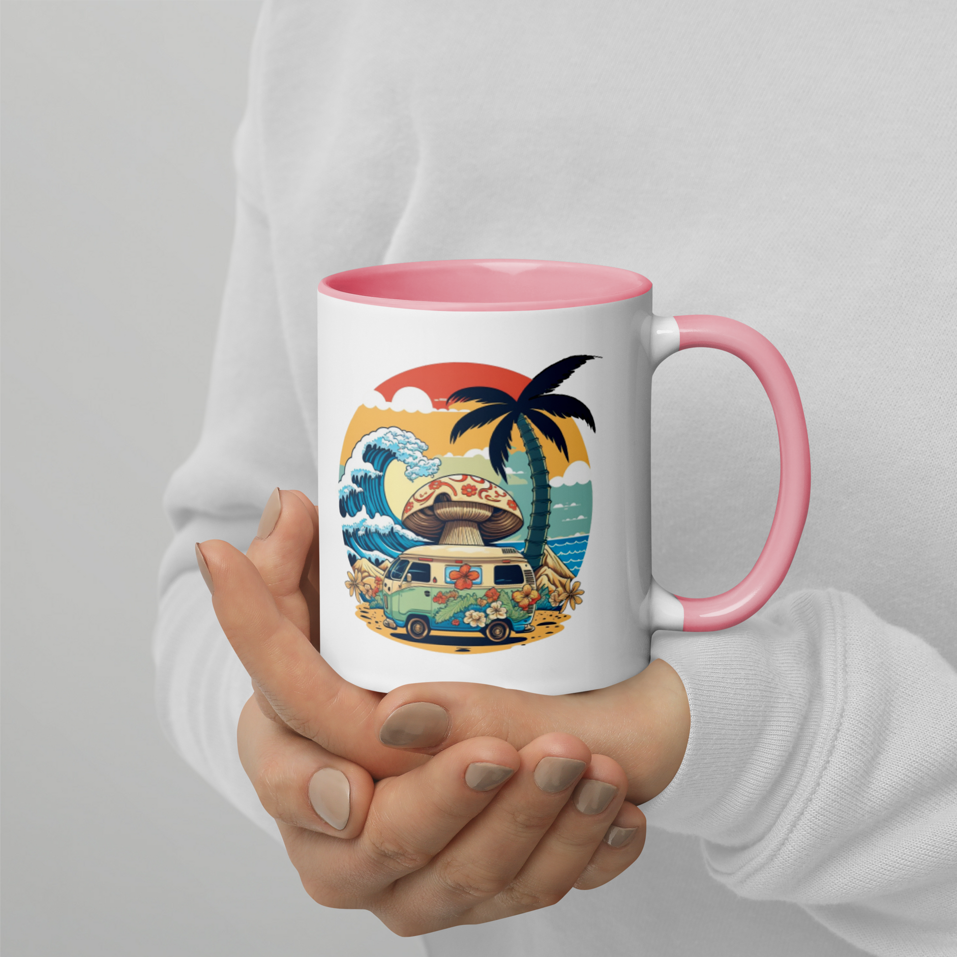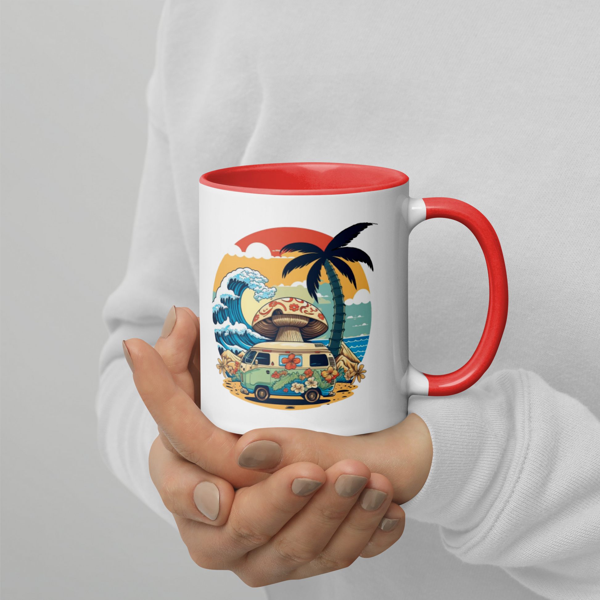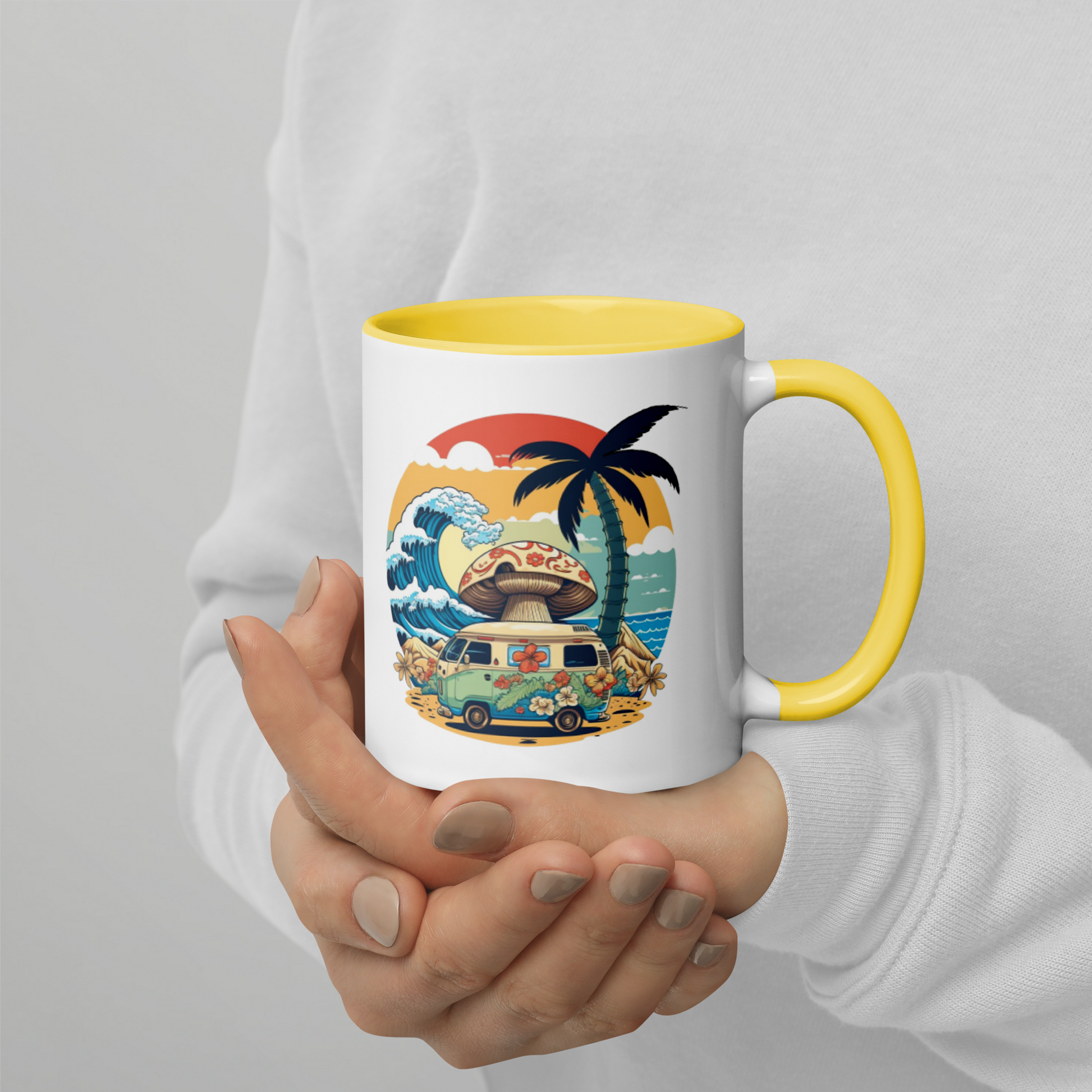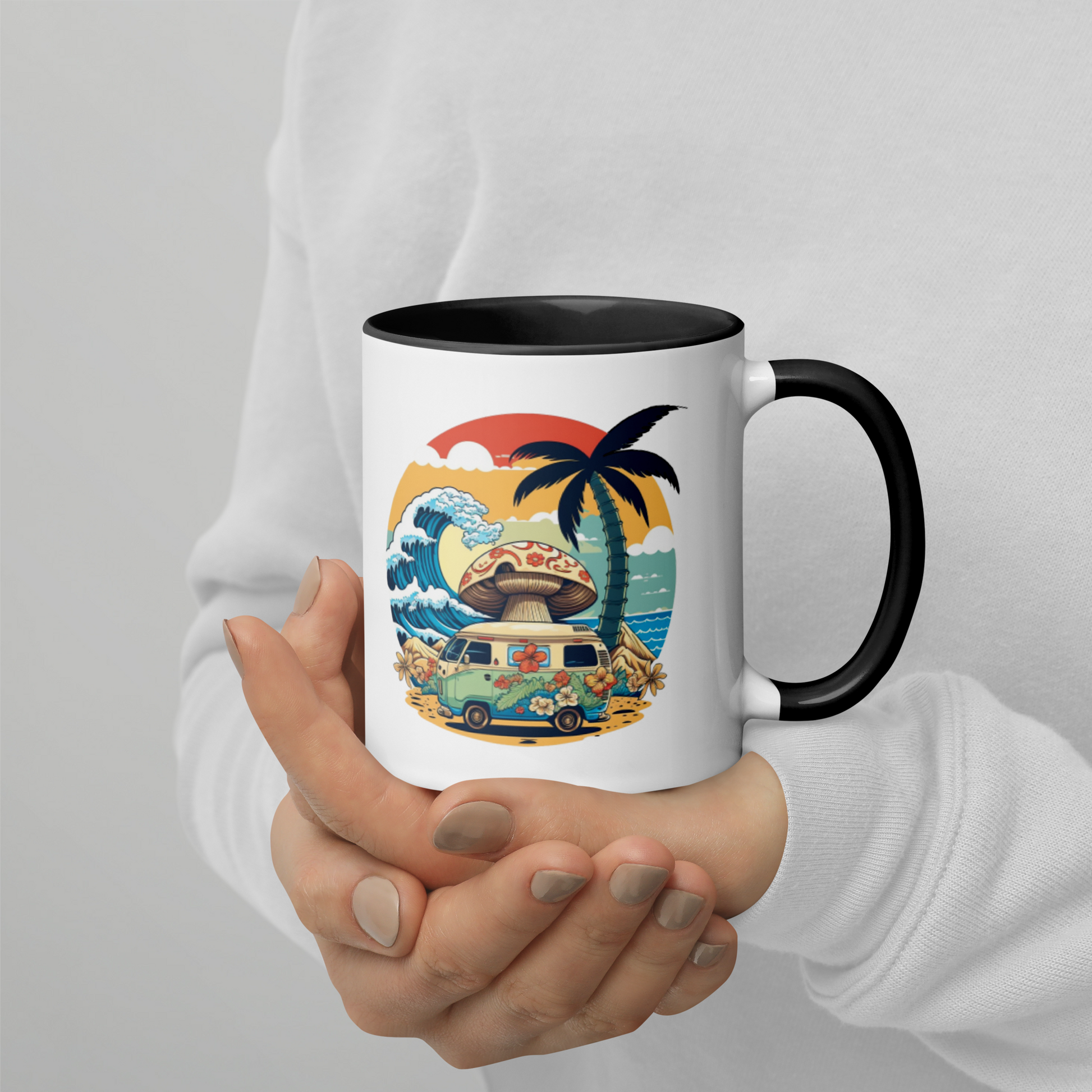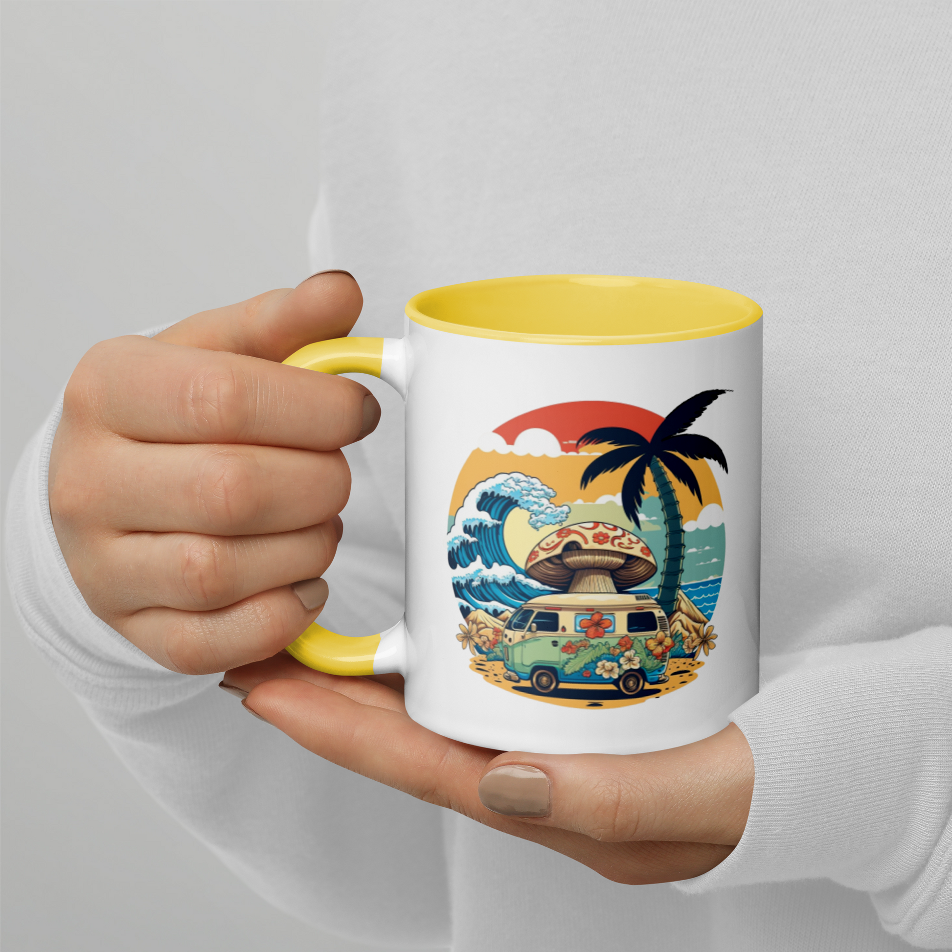 Add a splash of color to your morning coffee or tea ritual! These ceramic mugs not only have a beautiful design on them, but also a colorful rim, handle, and inside, so the mug is bound to spice up your mug rack.
